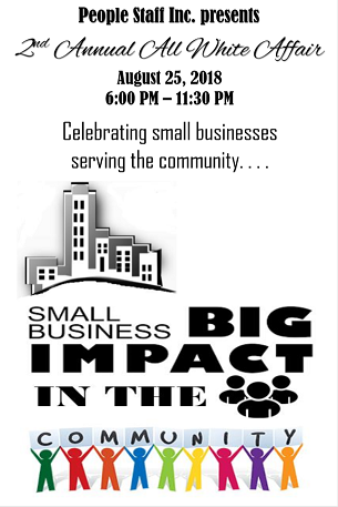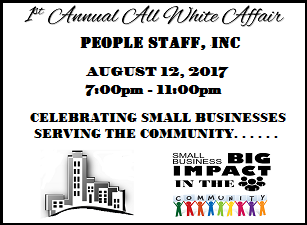 Saturday, August 12, 2017, People Staff Incorporated hosted its 1st Annual All White Affair. The event was held at the Chattanooga Convention Center and celebrated small businesses serving the community. Toyota of Cleveland was the Platinum sponsor for the event. Gold sponsors included ChattanoogaBlackPages.com, Dorothy Grisham Allstate, Eaves Formal Wear, Jammin WJFJ (online radio station), Kids Korner Learning Development Center, Lois Classic Boutique, Roots Hair and Beauty, and The Ware Law Firm.